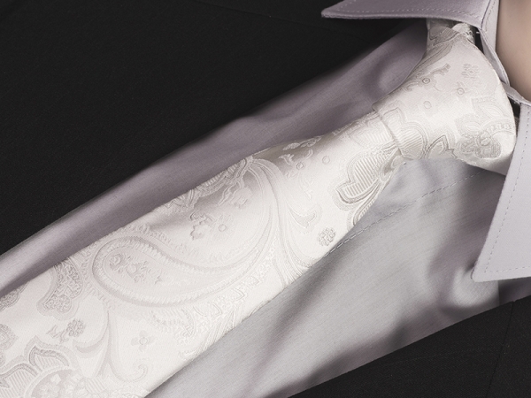 Żakardowa tkania w gęstym splocie pozwała uzyskać nasycone kolory, szlachetny połysk oraz zawiązać ładny kształtny węzeł