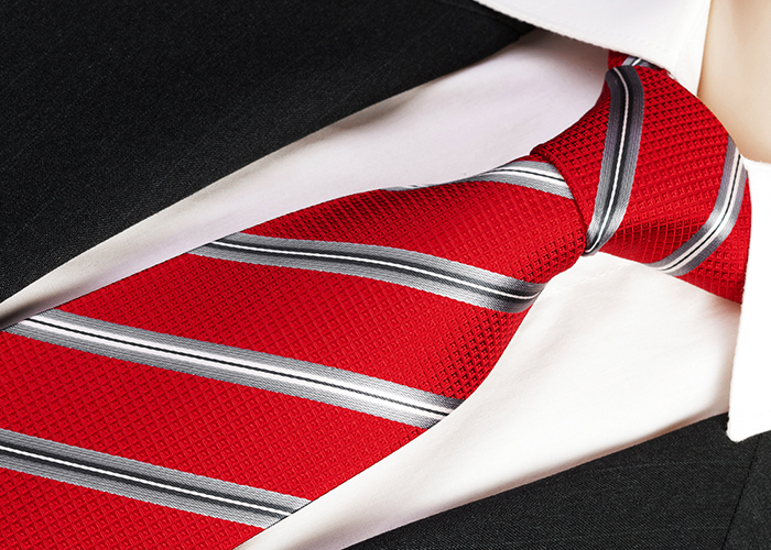 Żakardowa tkania w gęstym splocie pozwała uzyskać nasycone kolory, szlachetny połysk oraz zawiązać ładny kształtny węzeł